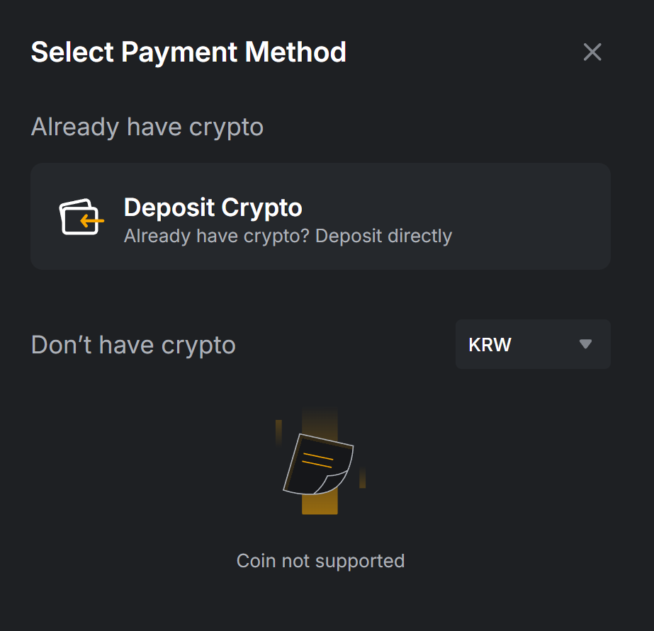바이비트에 접속한 후, 오른쪽 상단의 Deposit 버튼을 클릭합니다. 그 다음 화면에서 *Deposit Crypto*를 선택해 주세요.