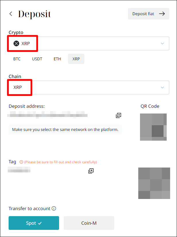 Crypto (코인이름)은 XRP(리플)로 설정해주시구요. Chain 또한 XRP(리플)로 설정해줍니다.